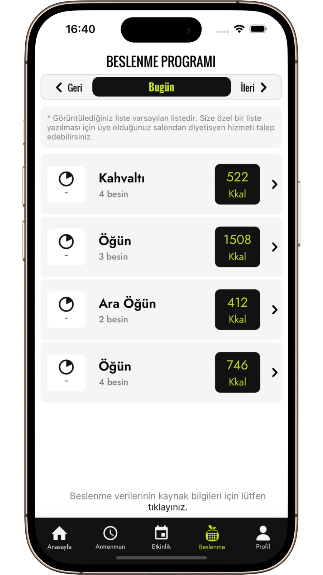 Uygulama içinden beslenme programını takip et. Bir diyetisyenden sana özel alternatifli bir liste yazmasını isteyebilirsin.
